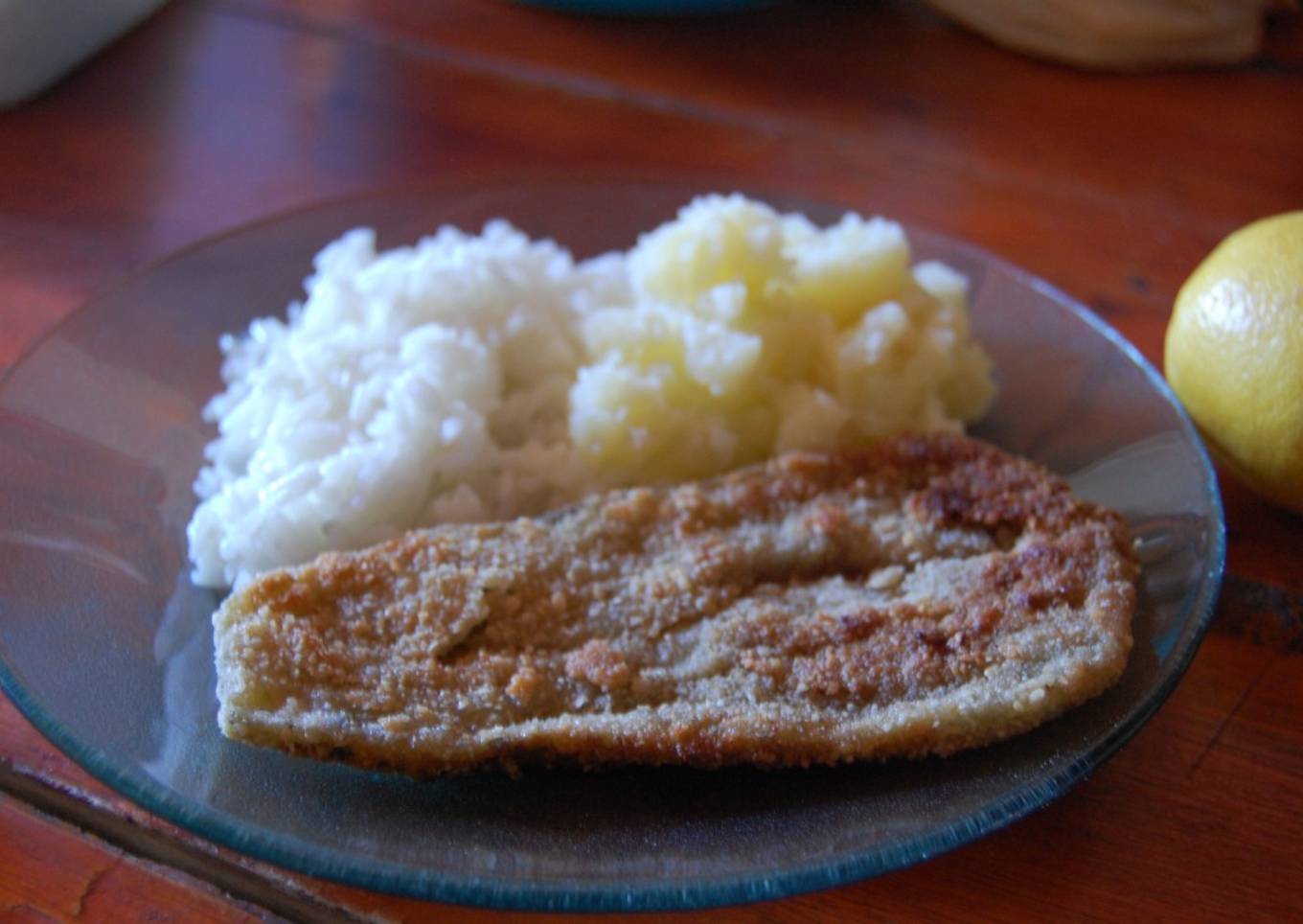 - Pasamos la berenjena por el batido de huevo y especias, para después mojado lo rebozamos en el pan rallado. Y listo, a freír :).