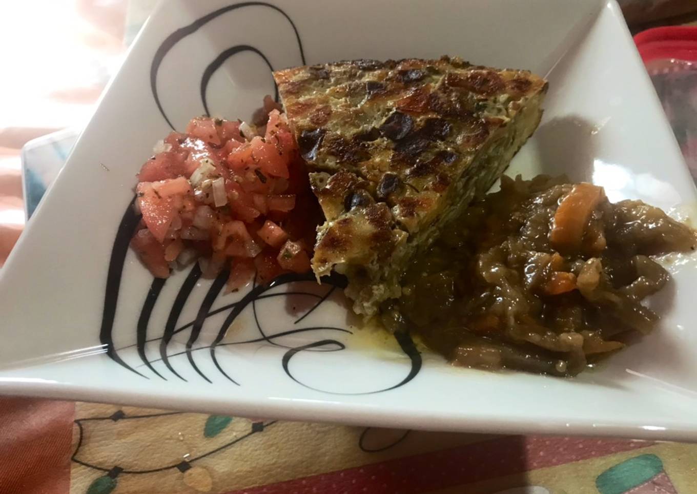 - Luego mezclamos con las berenjenas, agregamos los huevós y mezclamos todo, una vez lista, volcamos todo en un sartén con un chorrito de aceite, dejamos unos cinco minutos y tapamos, destapamos y controlamos que se haya dorado y damos vuelta unos minutos destapado y listo
