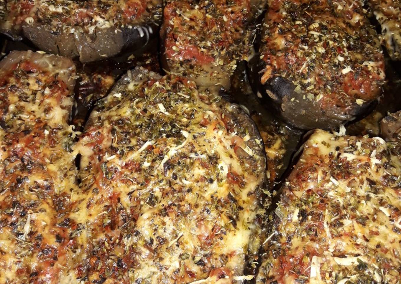 - Escurrir sin desarmar las berenjenas, acomodarlas en una asadera, agregarle la salsa que preparamos con el tomate cubeteado, rallar bastante queso, agregarle bastante orégano y al horno hasta que gratine. Que las disfruten!