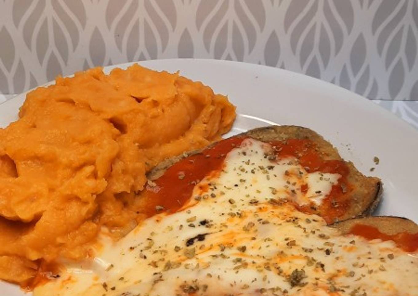 Cuando las des vuelta, le sumas la salsa de tomate y el queso cremoso. - Podes acompañarlas con lo que más te guste. En este caso lo hice con puré de batata zanahoria.