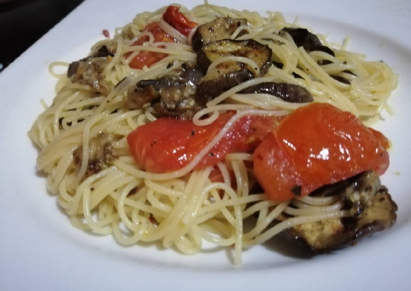 Instructions to make to make Pasta con Berenjenas y tomates al grill