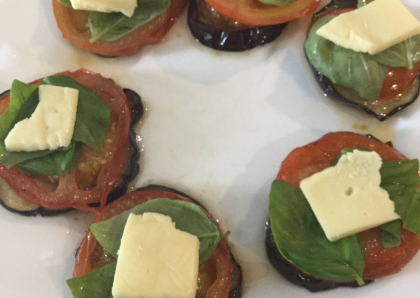- Las armamos con una rueda de berenjena, arriba el tomate el queso y la Albahaca otra rueda de berenjenas y otra capa de queso arriba y las llevamos al horno hasta que el queso de arriba estรฉ gratinado.