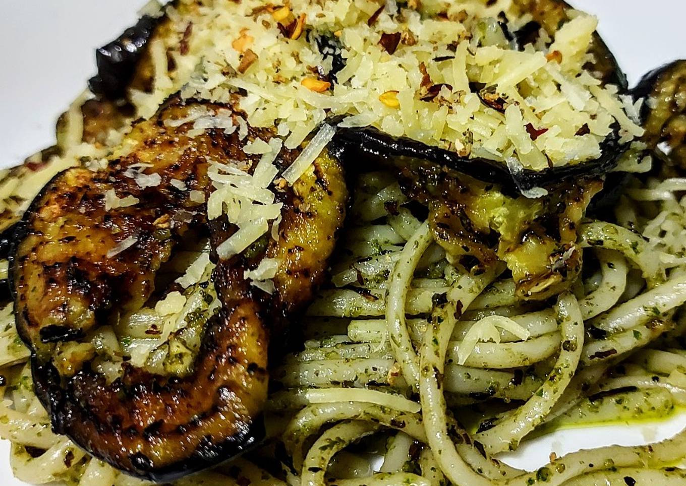 #almuerzosaludable.🤪🤪🤪🤪Para cenar en sábado con la familia reunida, aprovechando los encierros obligados, unidos para cuidarnos todos, y disfrutar de la cocina con placer y tiempo. Una berenjena asada con albahaca, mezclada con una pasta al pesto, de locos...!😛😛😛😛Surgió como surgen todas las buenas ideas, intentándolo, vamos y se los cuento todito...! 🍆🥜