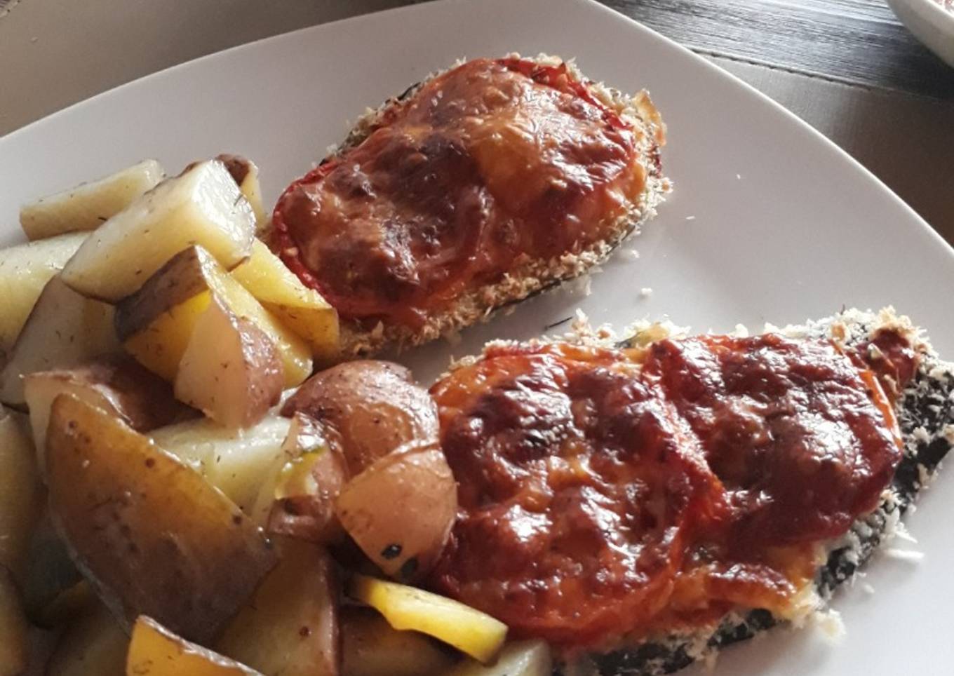 - En la bandeja del horno pasar una servilleta con aceite y montar las berenjenas, sobre estas colocar tomate en láminas con orégano, y finalizamoscon queso en lamina y un poquito de queso rallado para gratinar. Cocine en horno por unos 20 min.