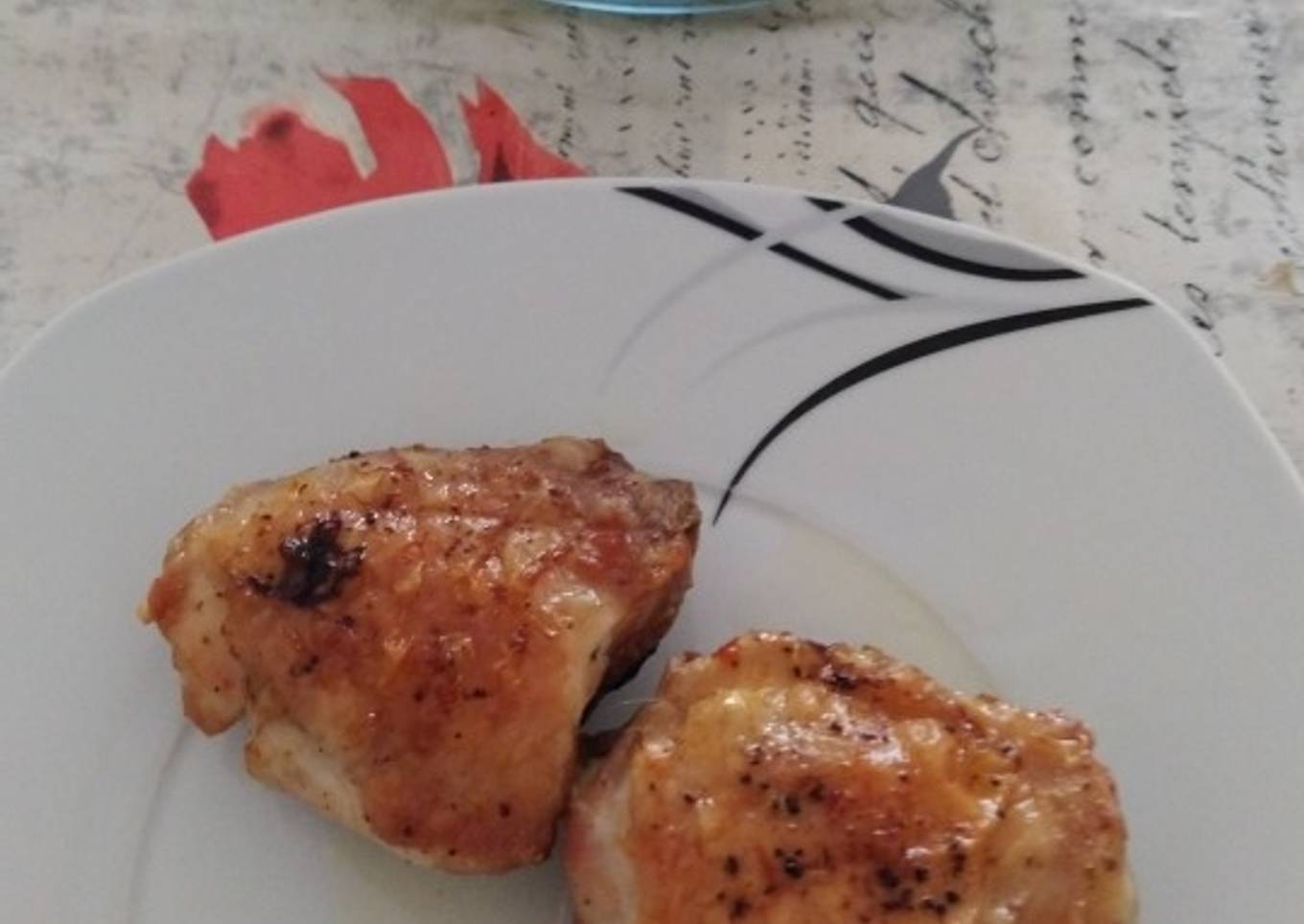 - Sazonamos los contramuslos al gusto, yo le puse sal, pimienta negra, ajo, orégano, un pelín de aceite y un chorro de vinagre (le da un sabor exquisito)