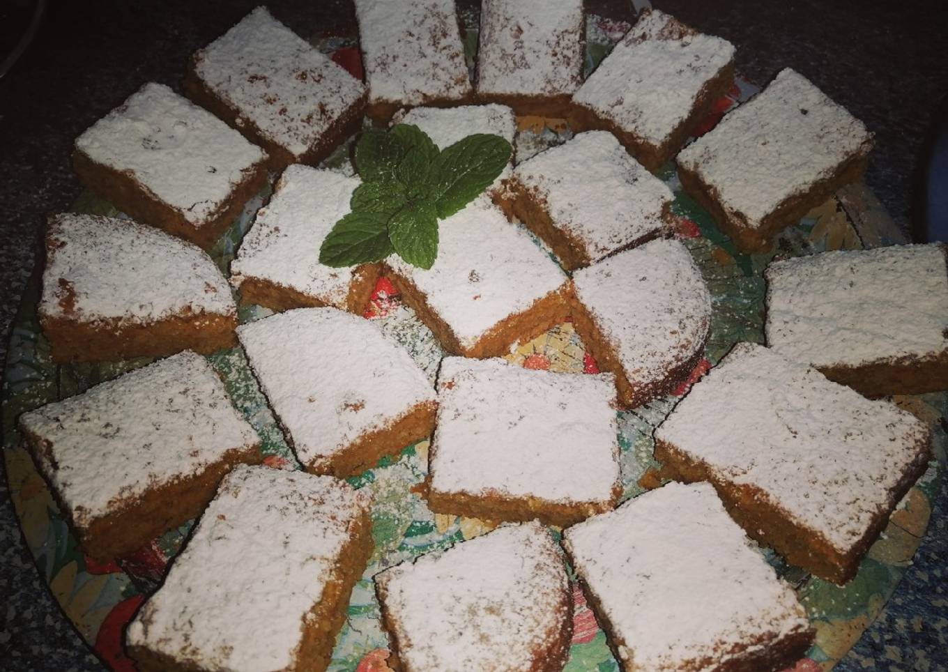 - Sacamos dejamos enfriar, cortamos y espolvorear con azúcar glass