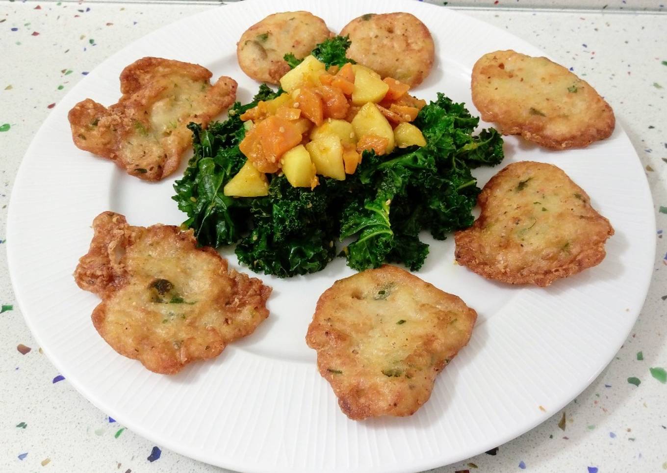 So that is going to wrap this up with this special food Steps to Make Homemade Tortillita de camarones y salteado de kale con calabaza y manzana. Thanks so much for your time. I'm confident that you can make this at home. There is gonna be more interesting food in home recipes coming up. Don't forget to bookmark this page in your browser, and share it to your loved ones, friends and colleague. Thank you for reading. Go on get cooking!
